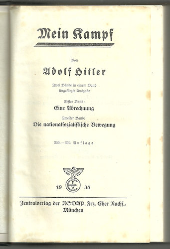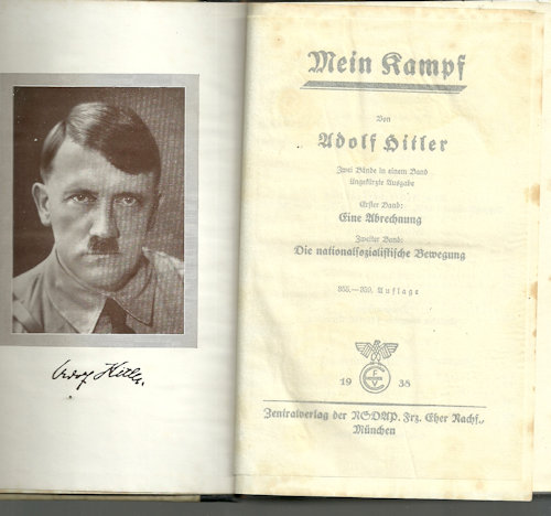 DESCRIPTION: The book is by Werner Jansen and is titled Das Buch Liebe published by Georg Westermann in Braunschweig with copyright date of 1920. It comprises 304 pages. The cover is in green cloth with gilt title on the spine, and a small tear on the edge of the spine (fixable!); otherwise, fine. This is a presentation to Heinrich Himmler, inscribed to him on the front flyleaf with: �Oberwachtf�hrer of the Rote Kreuz (Red Cross) Ilse Doehring with friendly greetings November 1940.� Beneath this Himmler has added his ownership signature: �H. Himmler.� This epic saga was dedicated to young women whose men were at the front during WWI. The author, Werner Jensen, and this work were very dear to Himmler�s heart in 1924. After first reading it Himmler declared this book, �. . . the songs of songs to the Nordic woman.� He said, �This is the ideal image we Germans dream of in our youth and are ready to die for as men.� (�Very good� and historically important to the extreme.) It shows the obvious sentimentality of the Reichsf�hrer-SS. This is not only revealing, but Himmler's signature is one of the boldest and best of his that we have ever seen. He was obviously proud to own this book.