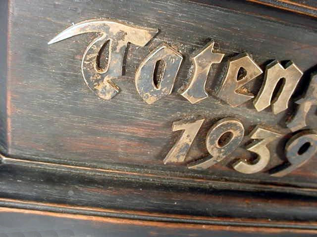 DESCRIPTION: This is an absolutely beautiful example of the woodcarver�s art. It was possibly done by hand in the Black Forest . . . or . . . was it done by machine? Regardless, it shows fantastic ingenuity. No one who has seen it can actually make an educated guess as to the procedure used. It is absolutely incredible. I personally believe it was carved by hand, or machine by a master carver and it was presented and used on the desks of high-ranking SS officers, probably on Heinrich Himmler�s staff.