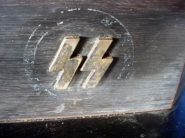 DESCRIPTION: Here is an ultrarare SS item seldom seen today. It is a wooden chest or box carved exquisitely with the SS runic symbols on the cover. The box measures about 3 inches high, and the box cover is 9� x 7� inches and extends about � inch over the edge (see images). The bottom base platform also extends in the same manner. The entire box is a masterpiece of dovetail work and tapered projections as is the interior with corresponding mortises (A real work of art).
