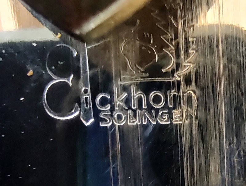 Now, if you really believe that American GIs just dunked donuts in these heavy beer mugs, you have another think coming! At night, I'm betting they made the transition to beer! Nonetheless, the mug has the maker�s mark of the Reinhold Merkelbach pottery company. And for a real irony, the mark is the one they used from 1882-1933: an "RM" with a Star of David in the background(!) Now, the Star of David was an ancient symbol used by many other people and even a sword manufacturer in England, so if the company was founded by Jews back in 1843, when they were established, I have no idea. The mug is in excellent condition except for one thing�the top is missing. The hole in the handle is there, but the top is not. That does not detract from its historical value one bit! It is 5 inches high and 4 inches wide and holds 0.5 liter. This is one of the last of the symbols that identified a major part of world history.