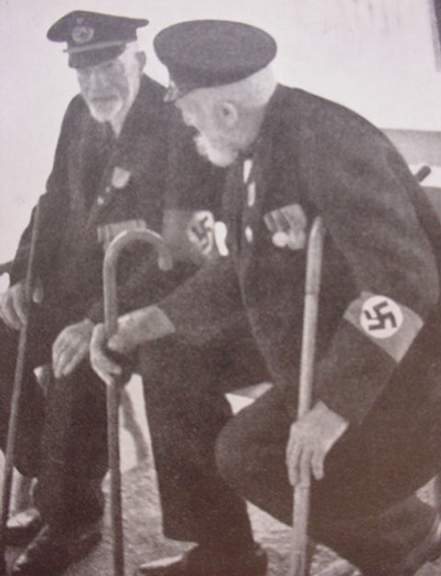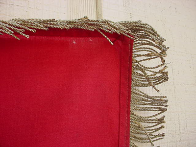DESCRIPTION: This is another of the veterans organizations, this one was for those considered war victims (severely wounded). This organization was formed in 1930 and institutionalized in 1933. It was an N.S. associated society assisting NSDAP party members and also non-members who had become disabled as a result of war injuries. Also see the flag from the NSKOV at FLAG 2-7 for further information on the Veterans Association. The standard is in really nice overall condition and has loops for fastening it to the pole and silver fringe all around three sides and that is what makes it a standard rather than a flag. Since it is a standard this means that it might have been consecrated by its being touched to the Blutfahne (the sacred blood flag at the Nuremberg party rally). The black patch at the left hand upper corner reads Kriegsopferversorgung Stommeln. This means it is the official standard of the veterans of the wars 1870-1918 who were severely wounded and now live in the village of Stommeln and this is a village in the northwest of Cologne. Extremely heavy and tough fighting went on in that area in 1944 when the American armored spearhead was ground to a halt in the Stuberg-Mausbach area by the brave Wehrmacht counterattack that was mounted by units of the 17th German infantry Division, a unit that which had been re-equipped in west Prussia and was rushed to the battle zone in Stolberg. They fought well and inflicted many casualties on the unwelcome guests in the shadow of the sacred River Rhine. The standard measures 4 ft. x 55 inches including the fringe along the edges. It is quite a handsome piece. It has a few minor moth holes but overall in quite nice shape. PRICE: SOLD |