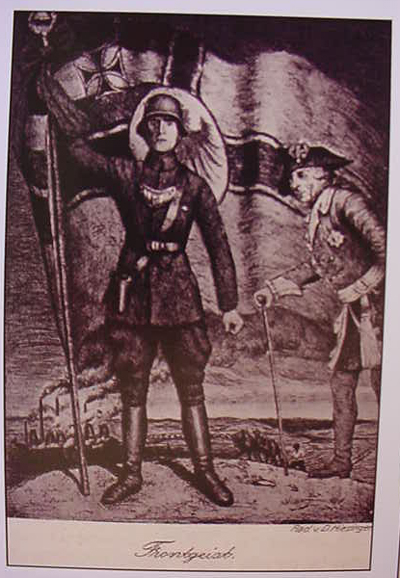 DESCRIPTION: Here in beautiful condition is the yearly edition of the book published by the official NS veterans’ organization. This is a lavish and beautiful historic presentation that was a source of pride to the ex-warriors of the Reich. The calendar on the first pages traces Germany’s glory from the great battle in the Teutoberger Forest through the medieval knights, the Landsknecht, the peasants’ war, the wars of Prussia’s Frederick the Great, 1870 conflict with France, WWI, etc. The death of the great Marshal von Hindenburg is covered dramatically with his grand and somber funeral, and then there are many fine illustrations and photos on the 144 pages, some, very inspiring. To the serious Germanophile there is a section of the book that is devoted to the Kyffhäuser Denkmal or monument. This is most awe inspiring for those who have visited it like me. While standing for hours looking at this absolutely stupendous edifice I couldn’t help feeling that I had stepped if only momentarily into the glory that was Germany. The artistic stone cutting and bronze statuary is breathtaking and the messages conveyed are unmistakable and poignant. Here is “Deutschlands Gloria.” I could go on and on, but the few who will understand know who they are and what it all means. You can go to various places on the Web and look up “Kyffhauser” and much of the history and pictures will emerge, but my recommendation is to go there, stand there, reflect there, and you will never forget it, especially if you are one of that peculiar race of Germanophiles. George Bush wouldn’t feel a thing!