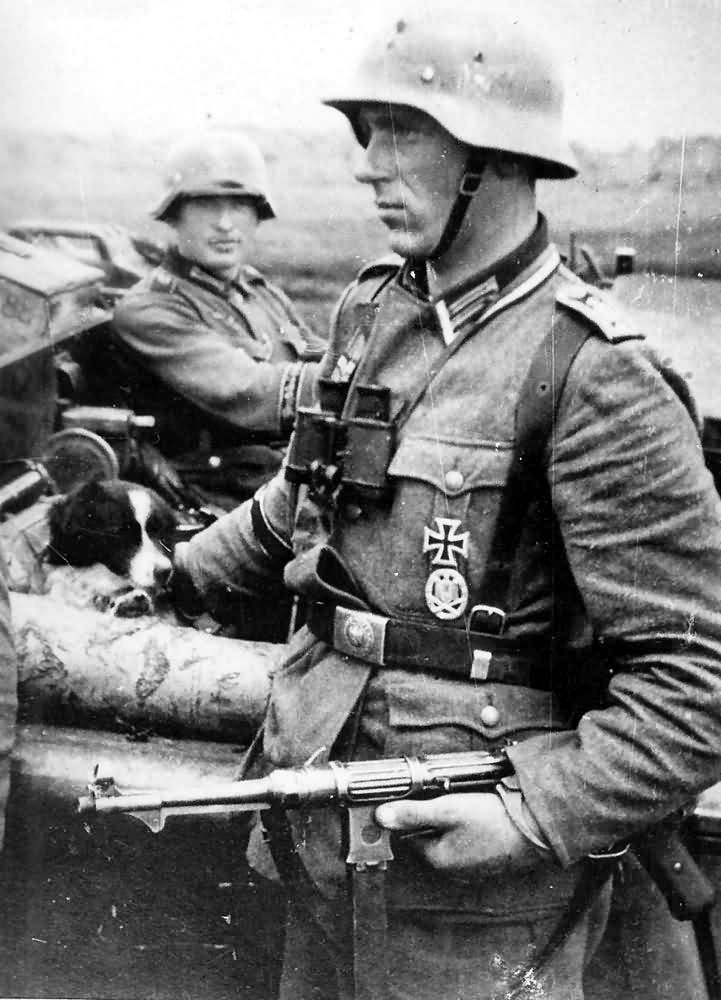 DESCRIPTION: Here is certainly the most desirable of the Third Reich field-marshal series. It’s named after the illustrious Prince Eugene of Savoy (1663-1736). He was one of the most successful military commanders in modern military history. Born in Paris he grew up around the French court of King Louis XIV, but later moved to Austria and transferred his loyalty to the Hapsburg Monarchy spanning six decades. Eugene served several Holy Roman emperors: Leopold I, Joseph I, and Charles VI. He was the consummate warrior and first saw action against the Ottoman Turks at the siege of Vienna and then through many subsequent wars; however, the prince’s fame was secured with his decisive victory against the Ottomans at the Battle of Zenta in 1697 earning him wide fame in Europe. Is it any wonder that the Germans named the most beautiful of their army swords after him? Although it was a sword originally designed and issued to army officers it was unofficially used by officers of the elite Austrian-based Division Prinz Eugen of the Waffen-SS, an elite fighting unit. Pictures exist of Waffen-SS officers wearing this sword, why not? They themselves were named after this heroic marshal. A beloved song was written and sung by all troops of the German Wehrmacht. It was named “Prinz Eugen, der edle Ritter”–”Prince Eugene, the Noble Knight.” It commemorates his victory over the Turks in 1717. The Sword The sword is by the prestigious firm of Carl Eickhorn of Solingen. It is 33 inches long and slightly curved since edged chromed and not sharpened-style fuller blade. The blade retains its mirror-lustered finish (absolutly excellent condition). The ricasso is marked original “Eickhorn Solingen” with the knight’s helmeted head. All fittings are gilded with some wear to the outermost edges. It has the dove-head pommel and is decorated with a large Wehrmacht eagle on it. Excellent patterns decorate the back strap, knuckle bow, and ferrule, and a very stylized army eagle decorates the crossguard, but is quite different from the standard ones that are seen on more standard types of army swords. There is with it a silver portepee with leather strap. The black, metal scabbard retains 90 percent of the paint with the usual wear. It has a single hanger ring with leather buckle attachment. Overall length 39 3/4 inches. This is a rare sword that whenever found often brings as much as $2,500. PRICE: SOLD |