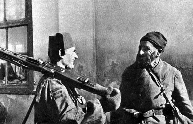 DESCRIPTION: When the independent state of Croatia proclaimed its independence on April 10, 1941, during the German invasion of Yugoslavia, part of the land it claimed was the former Astro-Hungarian province of Bosnia-Herzegovina. The province was of an ethnic mix with a portion of the population being Catholic Croatian, a portion being Orthodox Serbian, and a portion being Croatians of the Muslim faith, and it was these Muslim inhabitants of Bosnia that Reichsführer Heinrich Himmler and the SS would attempt to recruit for a Croatian SS division. The persons responsible for the recruitment in particular of Croatian Muslims by the SS were manyfold. For one, Himmler was fascinated by the Islamic faith and thought Muslims to be fearless soldiers who were willing to fight and die for their religion and furthermore he subscribed to a general theory that Croatians (and therefore the Croatian Muslims) were not in fact Slavic people, but actually of Aryan descent and thereby acceptable to the racially pure SS movement. The Germans were hoping to rally the world’s 350 million Muslims to their side in a struggle against international communism and its ardent supporter the British Empire. The creation of a Muslim, albeit European Muslim, division, was considered a firm stepping-stone to this greater end. Adolf Hitler approved of Himmler’s idea in February 1943, however, the Croatian leader Ante Pavelic and his ministry agreed to the division’s creation on March 5, 1943. The division’s strength reached the required 26,000 men by mid 1943. The new division was assigned the number “13” and originally named the 13 SS Fri. Gebirgsjager Division (Kroatien) or Handzar in the Croatian language. The symbol on their collar tabs is the curved Turkish-style sword (scimitar). This sword has historically been the symbol of Bosnia. The headgear worn by this division was the Muslim fez in field gray for normal service and the red fez occurred for walking out; both had the SS eagle and death’s head insignia sewn in the front of this headgear. The oval mountain troop edelweiss patch was worn on the right arm. The collar patches depicted an arm holding the scimitar sword. The great service that was rendered to the SS and the German forces was the ‘very special service’ that amounted to partisan hunting and that was so effectively pursued by these Muslim troopers. It is estimated that some 20,000 Muslims served in the Hanzar (Handschar) SS Division. They have been accused of all sorts of atrocities imaginable, but the horrid massacres and mutilations of the bloodthirsty partisans do not seem worthy of mention by the victorious allies who actually supplied and encouraged these murderers. The Yugoslav partisans were led by possibly the most blood-thirsty evil personality of WWII, General Marshal Josip Broz Tito. The Handschar soldiers fought against these genocidal fiends, but unfortunately were never able to collect the Gorgon’s head of that malignant rodent, Tito. The German’s recruited two SS divisions from Yugoslavia’s Muslim populations: the famous Bosnian Handschar Div. and the Albanian Skanderbeg 21st Waffen-SS Division. SS conscription in Yugoslavia during the war produced 42,000 Waffen-SS and police troops. When the Grand Mufti came to Berlin he received an enthusiastic reception by both the German people and the whole Islamic community of Germany, which welcomed him as the Führer of the Arabic world, and he soon became an honored guest of the National Socialist leadership and met several times with Hitler. It is noted that the Bosnian Muslim recruits rapidly found favor with Heinrich Himmler and the whole SS leadership and a special Muslim military school was established in Dresden, but we now witness the indiscriminate bashing of all Muslims that continues even today. The Fez First of all, you must realize that such Bosnian Waffen-SS headgear is extremely scarce and almost never does one show up. Why? Because American and British soldiers never faced them in battle. The red (walking-out version) does appear from time to time because essentially the red fez looks a bit like a Masonic Shriner’s fez and certain nefarious dealers have added real or fake SS eagles and skulls to them thereby ‘Bosnia-izing’ them. But real red ones do occasionally show up, but almost never do we see the service ones in grey and when you rarely see one it’s bound to be original (I have never seen a fake gray one). The one we offer here is most definitely a 100-percent-original piece with Bevo eagle and skull attached. The fez tail is intact and tied in the correct, prescribed manner. Here is a chance to acquire the rarest of Third Reich headgear from the toughest of the ‘bandit hunters’ the war had ever experienced. PRICE: SOLD |