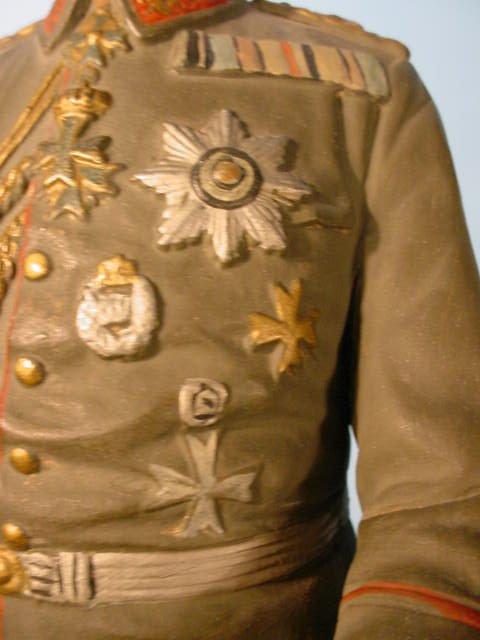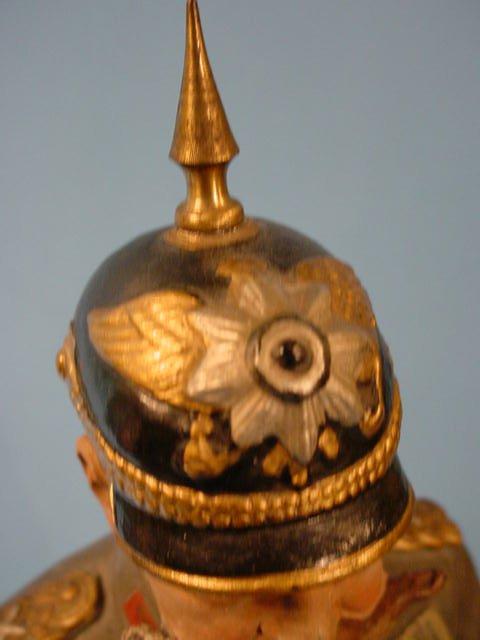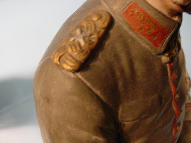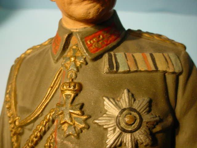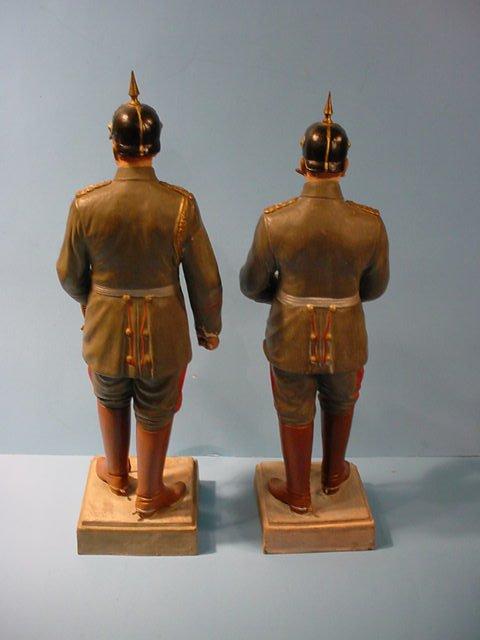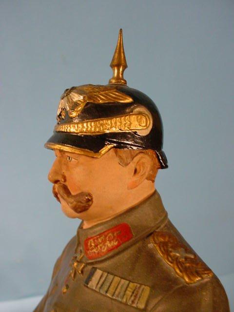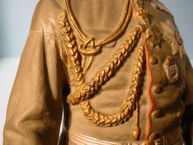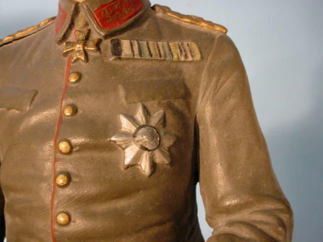 DESCRIPTION: Beautiful almost beyond belief! Here is a grouping of the most famous luminaries of the WW-I period. They are constructed in terracotta material and hand painted to true perfection and historic accuracy as to uniforms, medals, etc. These are period pieces from Imperial Germany and NOT Chinese-made toys that flood the market today. These two heroic figures are genuinely 100 years old, at least! They are so realistic looking that they practically breathe. The life-like quality of these figures could never be captured in bronze or metal of any kind. The faces are like fine portraits. The detail is so great that even the spurs on their boots are still there. (See our picture). It is nothing short of incredible that they survived this long in the pristine condition that they are in. (They are perfect!) Just imagine these pieces standing erect in the midst of your helmet collection. We can really say that these two figures are the finest depictions in artistic creativity we have ever seen (worldwide). Probably no bronze, in fact, no painting can be more realistic than these two items for beauty and historical significance. They could NEVER be duplicated today.