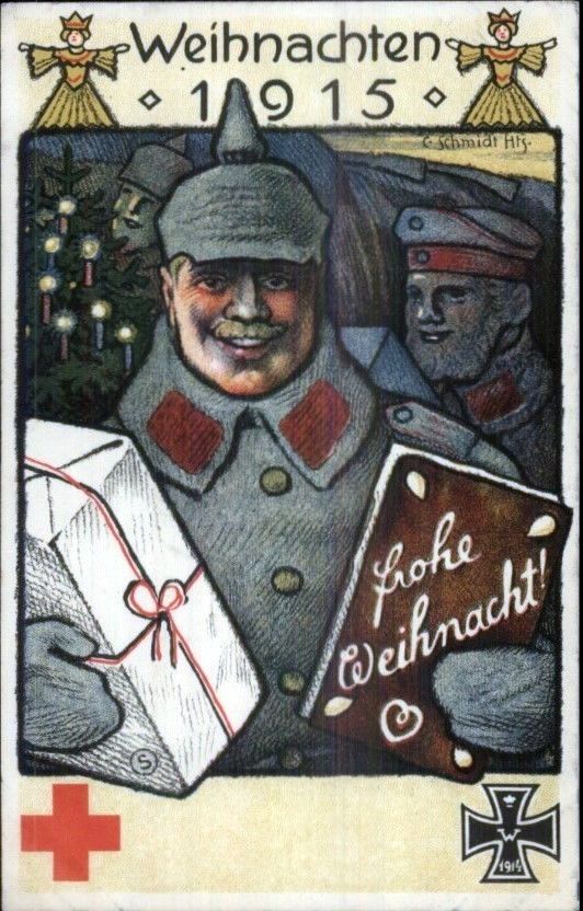 DESCRIPTION: This is a beautiful collector’s plate by the famed porcelain firm Rosenthal in Selb, Bavaria. It commemorates the Red Cross’ participation in WWI by Germany and Austria. The main message printed upon it is “Zur Erinnerung an grosse Zeit 1915.” This translates to “In Memory of the Great Era 1915.” The illustration on the obverse of the plate is noted to be from Prof. L. v. Zumbrusch. The shields that the child bears are the heraldic arms of Germany on the left and Imperial Austria on the right. The flag behind the little lad bears the international insignia of the Red Cross, and on the back it refers to the Prussian Roten Kreuz (Red Cross) and across from this is mentioned the Patriotic Women’s Organization of Austria. Across the reverse is a patriotic quote by Ludwig Fulda. The condition of the plate is perfect and it measures 8½ inches in diameter. It has an unusual fine, brownish-hue finish. We believe it to be a New Year’s commemorative plate given as thankful gifts to Red Cross personnel who had served at the Front. The infant figure probably represents the New War Year of 1915 coming in with a spirit of hopefulness for victory and peace resulting from the Great War.