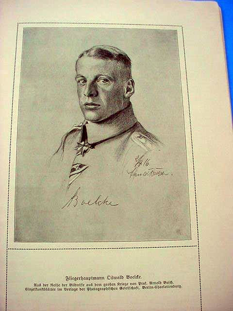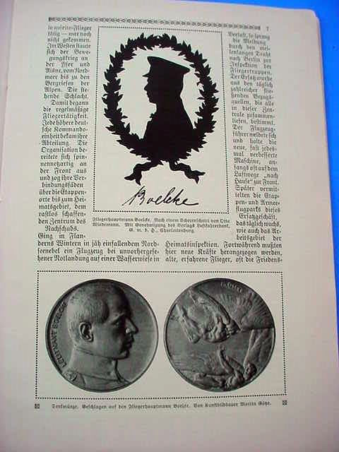 DESCRIPTION: This is a softcover booklet of 35 pages chronicling the most-noted pilots of Germany’s World War One air corps and their lives, careers, and war sagas. Brave stalwarts such as Immelmann, Richthofen, and Oswald Boelcke are pictured and praised along with other eagles of the aerial war. The book is in great condition even though more than a 100 years old. Someone penned “1918” inside the opening page. The cover has a really nice picture of a young airman who wears the Pour le Mérite (Blue Max). The book measures 10x7 inches and would be a great-looking addition to a collection of WWI air combat medals.